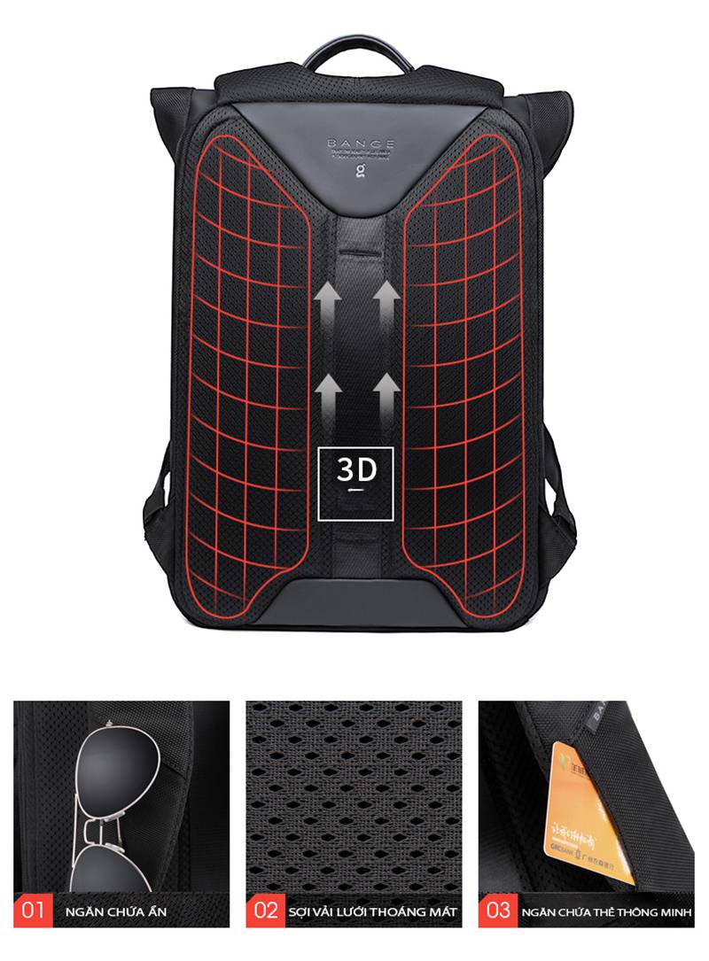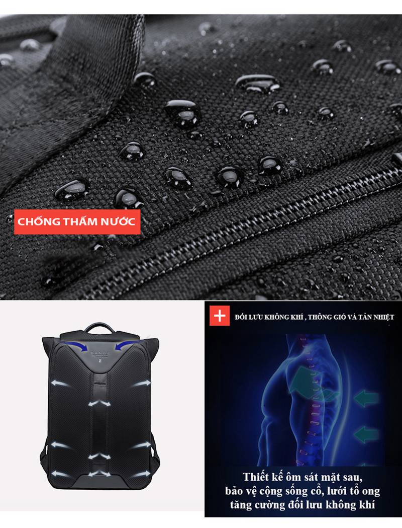 Phần quai đeo được thiết kế khá chắc chắn, từng đường khâu đều tỉ mỉ và nối chồng lên nhau càng làm mấu nối giữa quai đeo và balo thêm cứng cáp hơn. Mặt sau quai đeo và phần lưng balo có một lớp vải mút xốp thoáng khí, khiến cho quá trình vận động di chuyển không còn khó chịu và bí bách. Sạc dự phòng bằng cổng sạc USB bên hông cùng mặt sau của balo nam Bange Ready gắn thêm quai phụ gắn vào vali, thuận lợi trong việc di chuyển đi công tác, du lịch.
