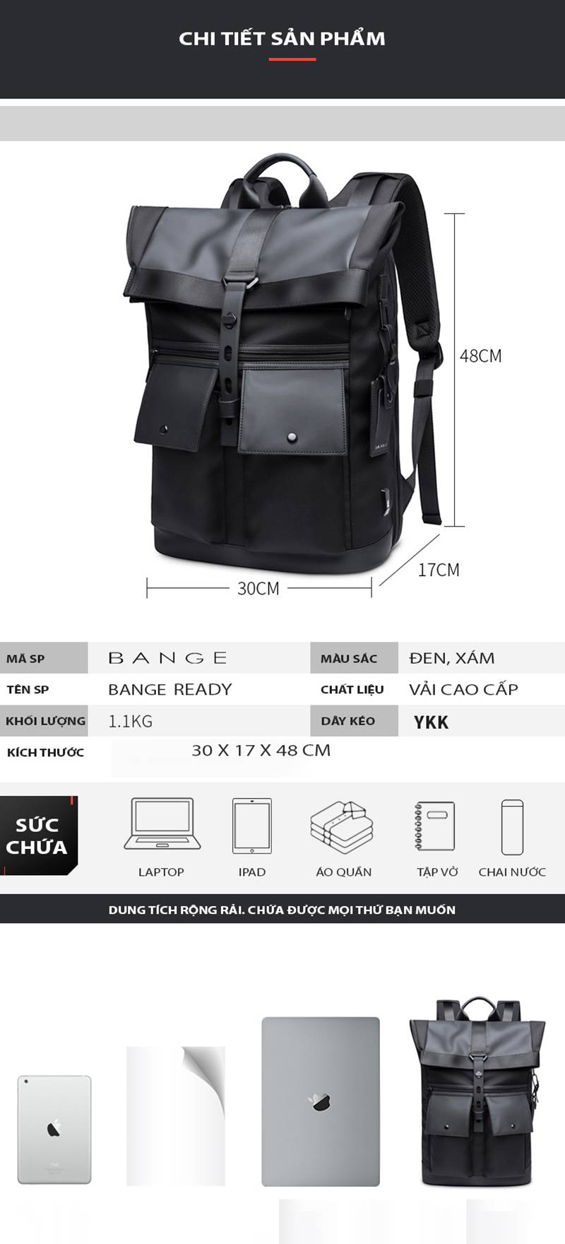 Bange Ready là mẫu balo du lịch nam cao cấp chống nước hot nhất hiện nay không chỉ bởi thiết kế sang trọng, trẻ trung, năng động mà còn bởi chất lượng không thể chê vào đâu được. Với màu sắc đen nhám, màu sắc của sự sang trọng, tinh tế và nam tính. Bange Ready chắc chắn sẽ là điểm nhấn của các chàng trai khi khoác lên mình một chiếc balo du lịch với phong cách tươi trẻ và đầy sức sống như vậy.