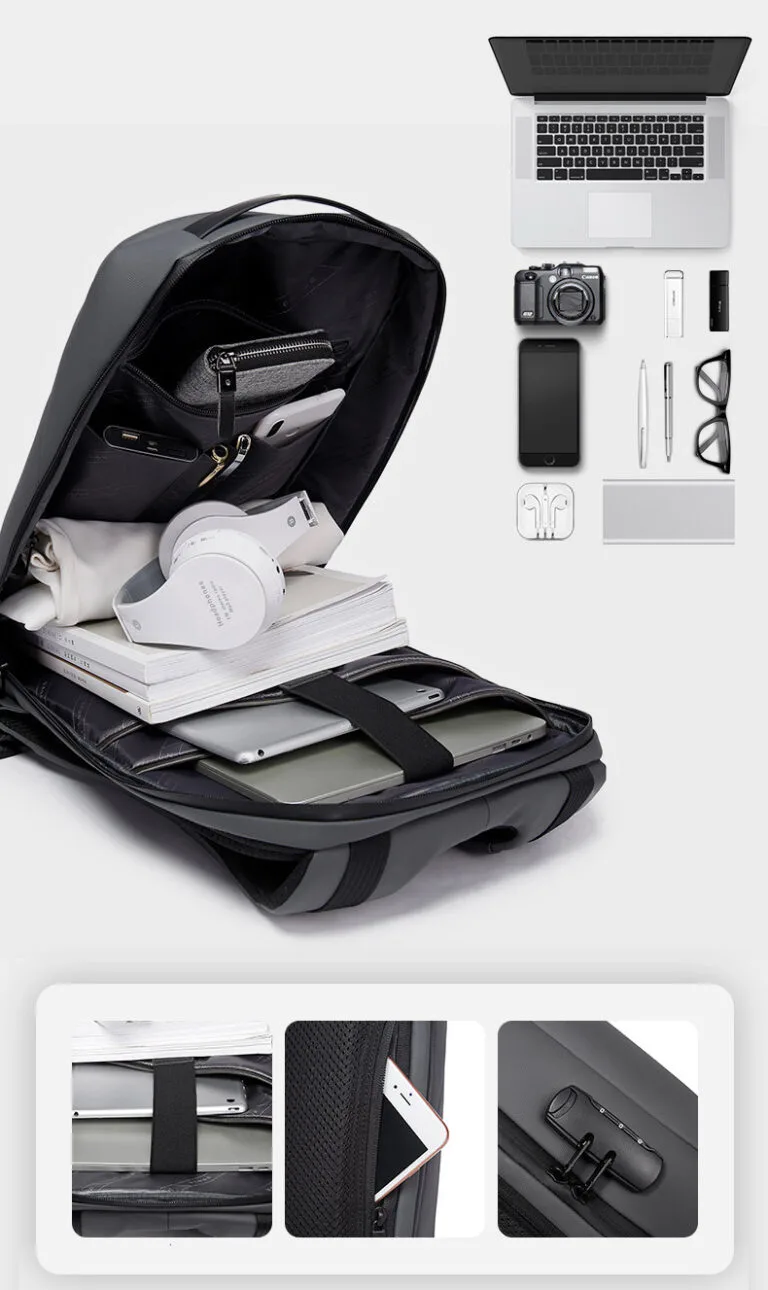 Ngoài ngăn chính thì balo nam cao cấp Bange Roy còn có thêm 5 ngăn phụ. Ngăn phụ lớn nhất đủ để chứa được laptop 15.6 inch. Các ngăn phụ khác có kích thước nhỏ hơn và khác nhau giúp bạn để được nhiều đồ dùng cần thiết cho chiếc balo của mình. Sự ngăn cách balo bằng 1 lớp vải mỏng đủ để ngăn cách các ngăn chứa với nhau làm chbalo thêm nhẹ mỗi khi mang vác.