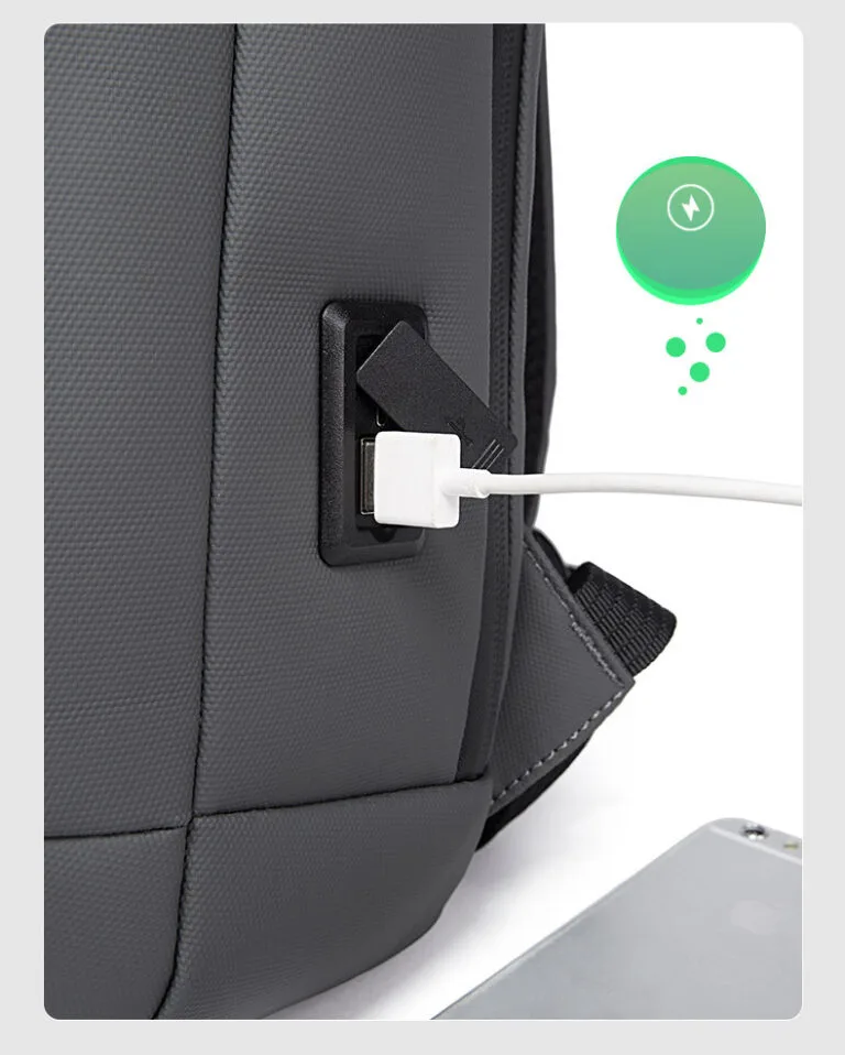 Thiết kế bề mặt ngoài của chiếc balo laptop nam gắn thêm cổng USB giúp bạn dễ dàng truyền tải dữ liệu giữa các thiết bị mà không cần sử dụng mạng. Ngoài ra còn có thể sạc pin các thiết bị điện tử hay truyền tải điện năng cho các thiết bị khác. Bạn có thể ở bất cứ đâu và bất cứ khi nào nhưng vẫn đảm bảo đủ nguồn điện để sử dụng cho thiết bị.