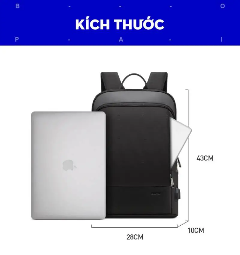 Sở hữu vẻ ngoài thanh lịch, hút hồn bạn từ ánh nhìn đầu tiên bởi bề mặt ngoài láng mịn, sắc đen huyền bí. Balo Bopai SUV có kích thước không quá lớn 28*10*43 cm nhưng có thể chứa đựng được khối lượng đồ lớn từ 36 - 55L, khối lượng sản phẩm là 0,7 kg.