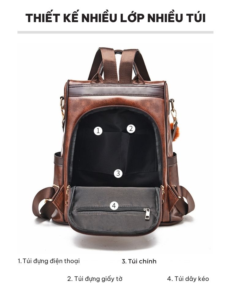 Được tạo nên từ vải PU chỉ cần chạm nhẹ một cái bạn có thể cảm nhận ngay được sự mềm mượt, dễ chịu mà nó đem lại. Với lối thiết kế hiện đại, các ngăn được sắp xếp một cách tối ưu nhất để tiết kiệm diện tích, không gian đựng đồ. Nhiều ngăn phụ đựng được những đồ vật lớn như chai nước hay ô nhỏ,... Đặc biệt còn có túi zip ở phía trước và phần dây đeo có thể điều chỉnh theo ý muốn của bạn.