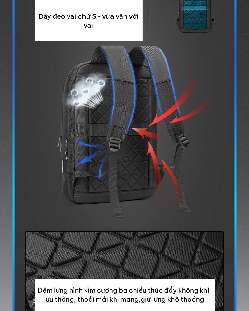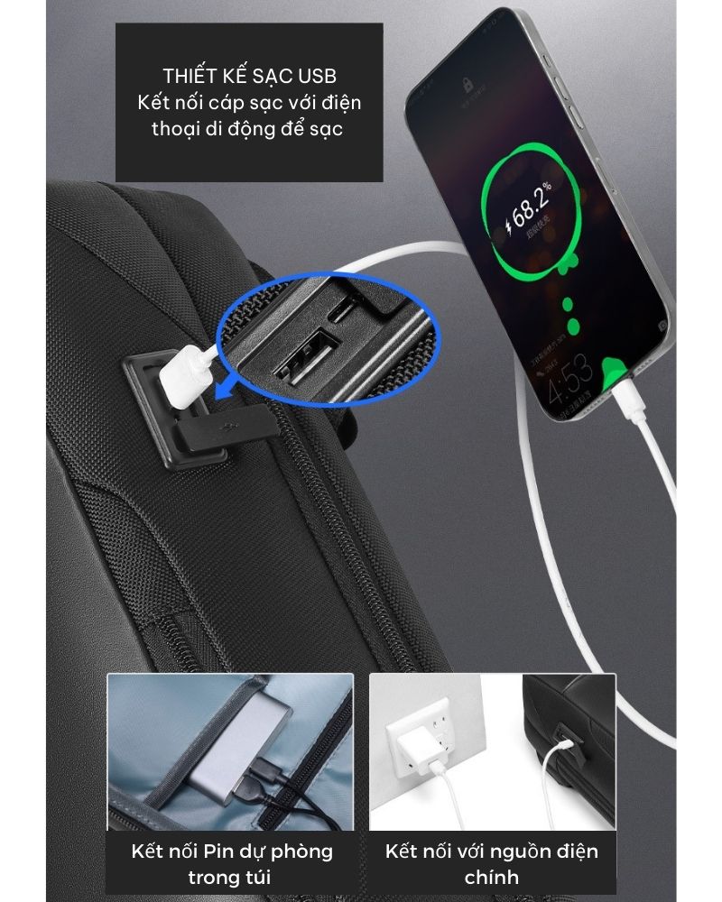 Balo Eurcool C được tạo nên từ chất liệu vải Oxford cao cấp, được mệnh danh là chất liệu dùng để sản xuất balo tốt nhất hiện nay. Bên cạnh balo có cổng sạc USB hoạt động như một chiếc sạc dự phòng có thể sạc điện vào và sạc điện thoại của bạn mọi lúc mọi nơi. Giúp bạn giảm được một phần chi phí khi phải mua sạc dự phòng mà phải mang vác theo rất bất tiện. Đệm lưng hình kim cương ba chiều thúc đẩy lưu thông khí giúp balo luôn khô ráo, thoáng mát cho cả người đeo. Có thể kết hợp chiếc balo siêu đặc biệt này với vali để thuận tiện trong việc di chuyển, đi lại hơn.