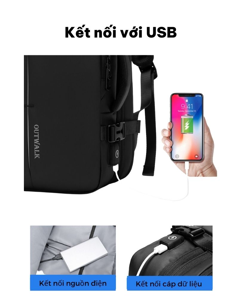 Ngoài ra, Outwalk Pull còn đi kèm các phụ kiện cơ bản như ổ cắm USB sạc nhanh điện thoại bên thân. Phần khóa kéo YKK được mạ cứng điện, đánh bóng nhiều lần nên khó phai màu. Dây đeo cố định lưng giúp đi lại dễ dàng và thuận tiện. Khóa điều chỉnh kích cỡ, giúp balo ổn định tốt hơn khi đi bộ. Dây đeo vai điều chỉnh theo ý muốn giúp tiện lợi hơn khi đi lại.