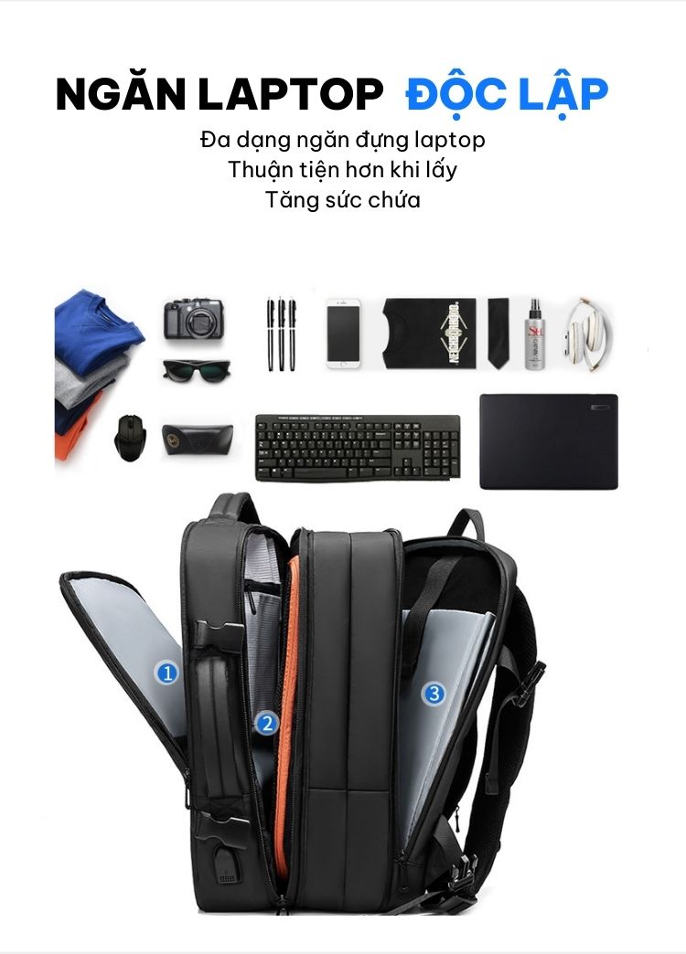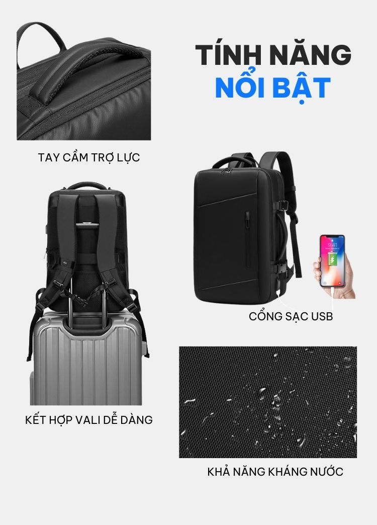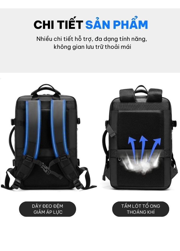 Điểm đặc biệt thu hút nhiều người sử dụng của mẫu sản phẩm này đó là có ngăn đựng laptop lên tới 17 inch cùng cổng sạc USB đa năng, bạn không cần lo lắng thiết bị của mình bị hết pin khi đang bên ngoài nữa. Phần lưng balo laptop giá rẻ được lót thêm tấm đệm thoáng khí và dây đeo giảm áp lực, có tính đàn hồi cao, giúp chống sốc hiệu quả.