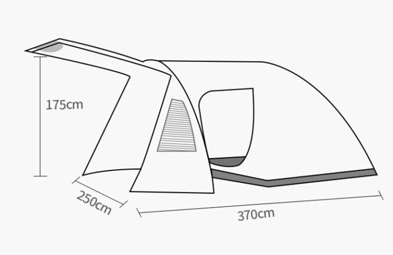 Lều cắm trại ngoài trời này có kích thước là 220 x 240 x 170 cm với trọng lượng 7.2 kg tạo ra một không gian riêng tư dành cho gia đình. Nếu là bạn bè thì cũng khá thoáng mát và tiện dụng. Không gian bên trong gồm một phòng ngủ có cửa thông gió giúp thoáng khí, mát mẻ dù ngoài trời có oi bức.