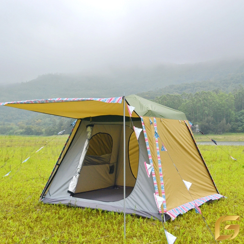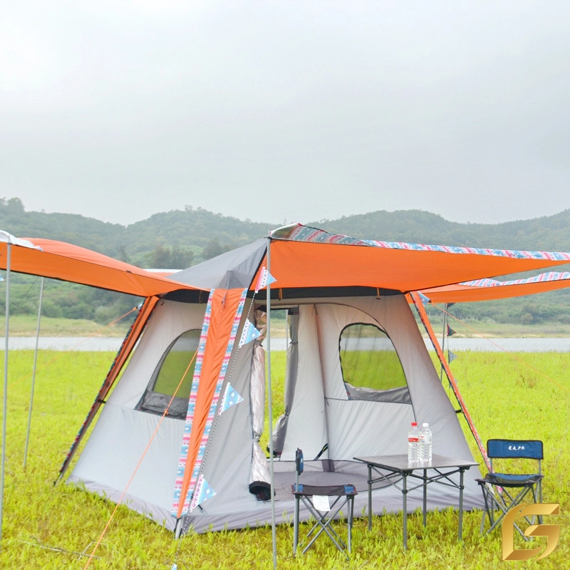 Mẫu lều này có nhiều chức năng dùng cho đi chơi, du lịch, dã ngoại, câu cá,…đều phù hợp và mang tính thẩm mỹ cao. Chiếc lều cắm trại dã ngoại này có cấu trúc với một phòng lớn thoải mái cho 4 – 6 người. Ống thép, cột sắt tự động, vải lều được làm từ loại Oxford với khả năng chống nước cao. Tránh được việc đi du lịch, cắm trại mà gặp phải trời đổ mưa. Ngoài ra còn có cửa thông gió làm cho bên trong luôn thoáng mát, không bị bí.