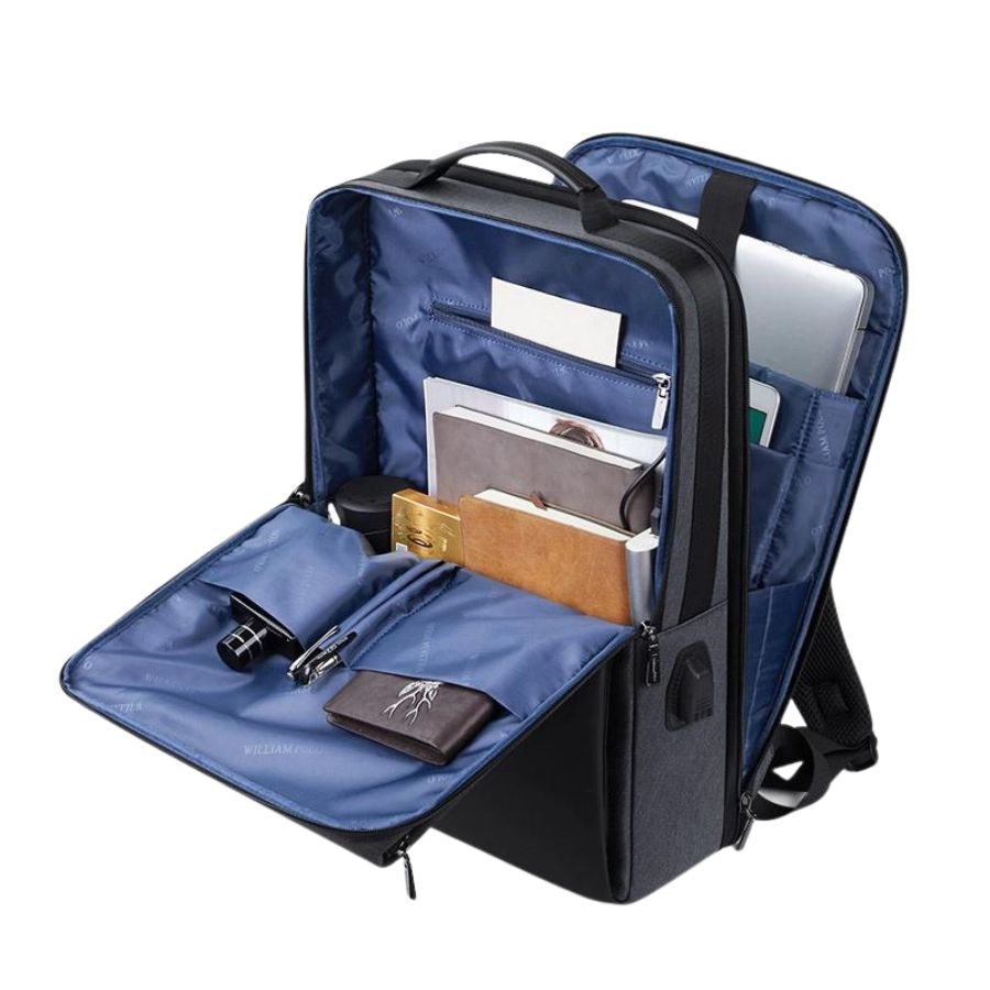 William Polo Locust với thiết kế đặc biệt nhiều ngăn chứa, tối ưu khả năng trữ đồ cho sản phẩm. Chỉ trong kích thước 45cm x 33cm x 21cm đã có 3 ngăn chứa lớn, nhiều ngăn chứa nhỏ được tích hợp bên trong và bên ngoài, ngăn chứa của balo laptop 15.6 inch phù hợp với nhiều loại laptop khác nhau.