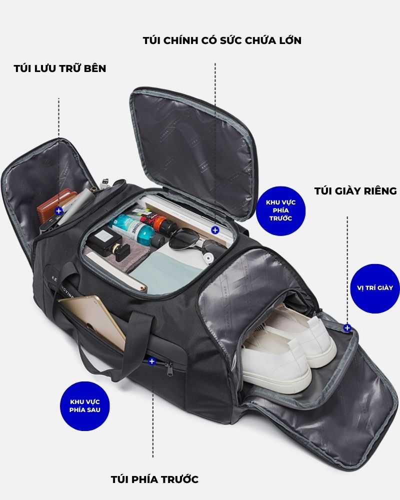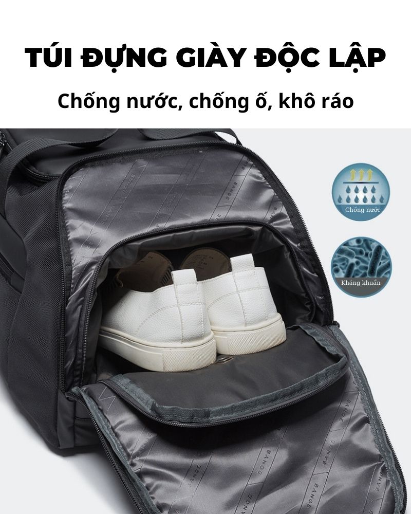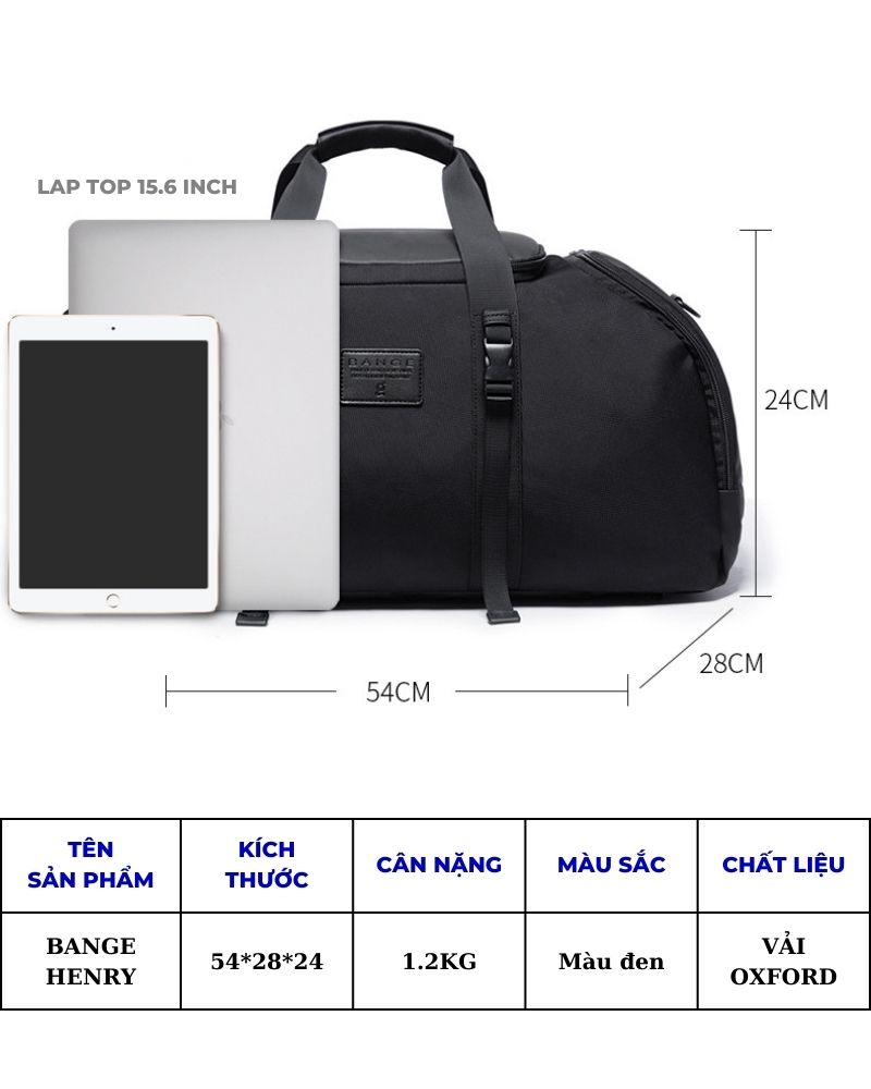 Túi xách du lịch Bange Henry sở hữu kích thước 54cm x 28cm x 24cm, với kích thước này bạn tha hồ bỏ cả thế giới vào bên trong. Túi được thiết kế thành từng ngăn gồm một ngăn chính và nhiều ngăn phụ, có ngăn đựng laptop riêng biệt, giúp bạn sắp xếp đồ đạc vào trong ngăn nắp và dễ dàng tìm kiếm hơn. Ngoài ra, túi còn có hẳn cả ngăn đựng giày, giúp giữ vệ sinh túi và thể hiện sự đẳng cấp trong thiết kế, sự chỉnh chu và toàn diện mà Bange mang lại.