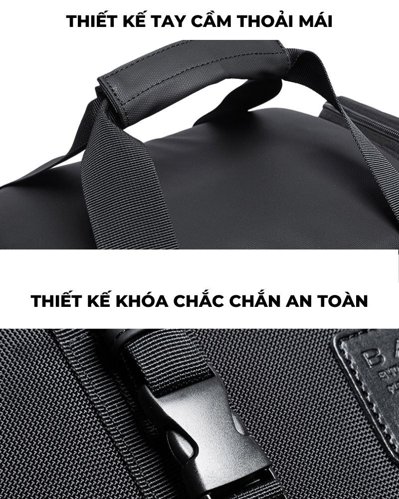 Túi được bao bọc bởi màu đen sang trọng, hiện đại, trông rất bắt mắt. Với chất liệu được làm bằng vải Oxford cao cấp, bền đẹp, do đó rất phù hợp để đi du lịch, khả năng balo chống thấm nước và chống trầy xước cũng rất tốt. Chất liệu tốt cùng sự tỉ mỉ trong từng đường nét nên chiếc túi chỉ nặng 1.2kg, thật khó tin khi túi xách du lịch lại nhẹ đến như vậy đúng không? Bange Henry sẽ là những trải nghiệm mới và rất đáng đồng tiền để bạn lựa chọn em nó đồng hành cho những chuyến đi.